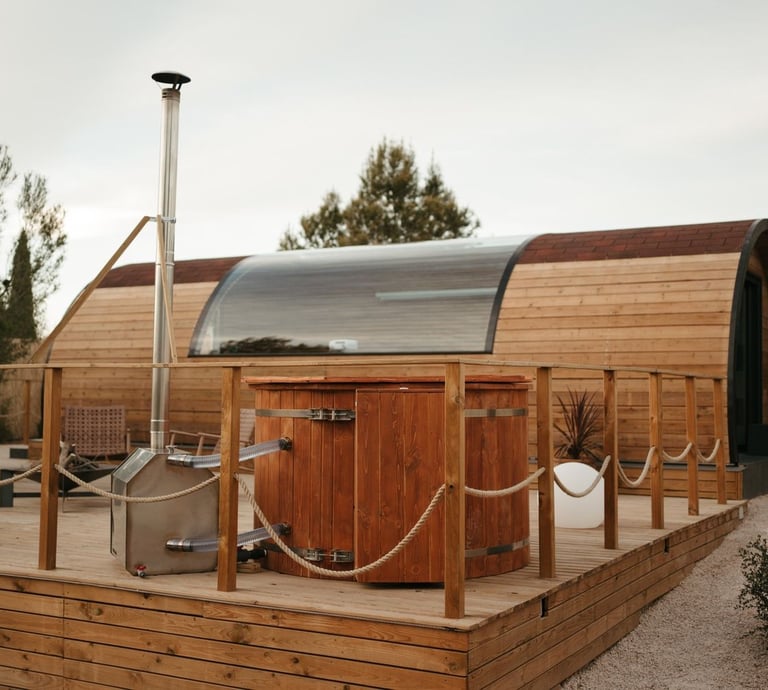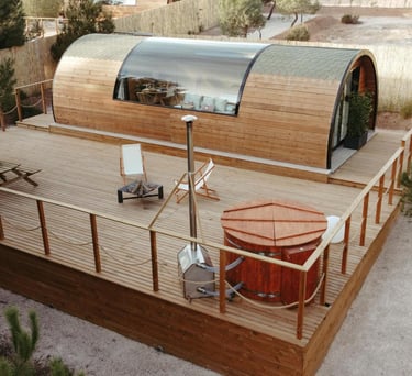 Cabaña tipo rural ubicada en Chinchón, equipada con jacuzzi tipo hidromasaje privado, servicios de streaming (Netflix, YouTube Premium, HBO, Prime, Disney+), cama queen size, baño con ducha, aire acondicionado, calefacción, 1 plaza de parking