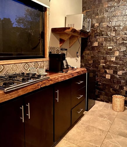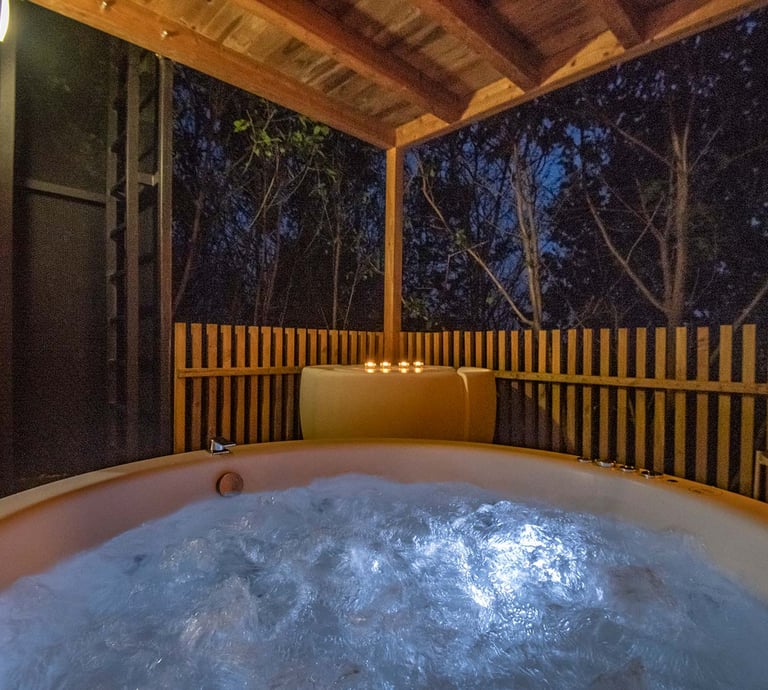 Cómoda tabaña tipo rural con jacuzzi tipo hidromasaje privado, barbacoa privada, servicios de streaming (Netflix, YouTube Premium, HBO, Prime, Disney+), cama queen size, baño con ducha adaptable, aire acondicionado, calefacción, 1 plaza de parking