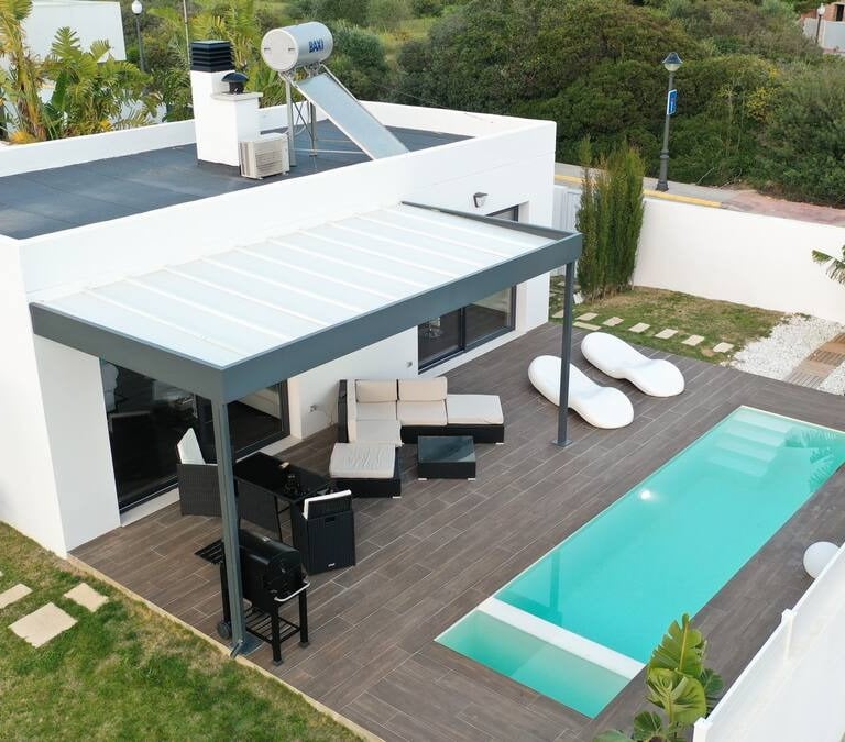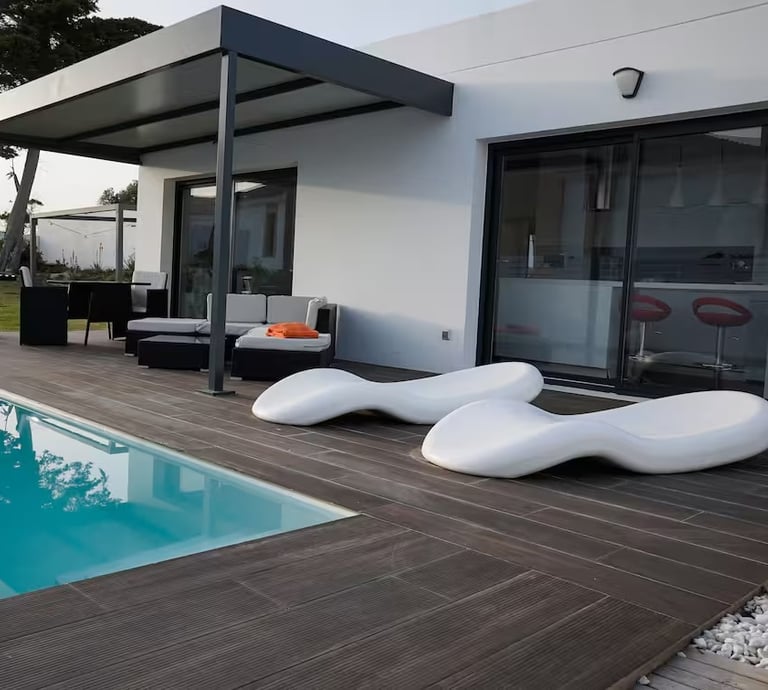 Lujoso chalet con piscina climatizada, barbacoa exterior, servicios de streaming (Netflix, YouTube Premium, HBO, Prime, Disney+), cama queen size, baño, aire acondicionado, chimenea, 1 plaza de parking, cocina, salón con sofacama