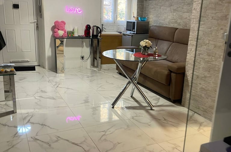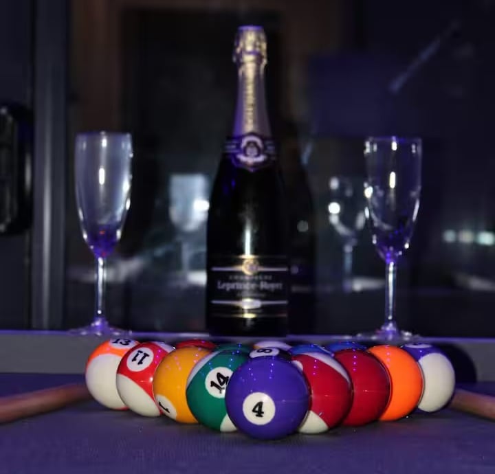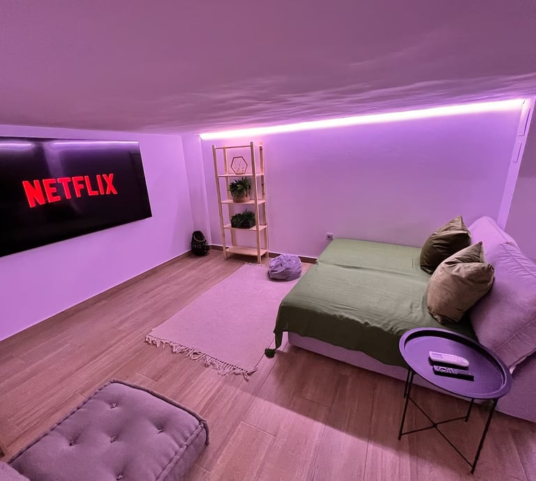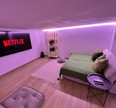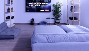 Lujoso piso tipo estudio con jacuzzi tipo hidromasaje, servicios de streaming (Netflix, YouTube Premium, HBO, Prime, Disney+), cama queen size, baño con ducha adaptable, aire acondicionado, calefacción, mesa de billar, 1 plaza de parking
