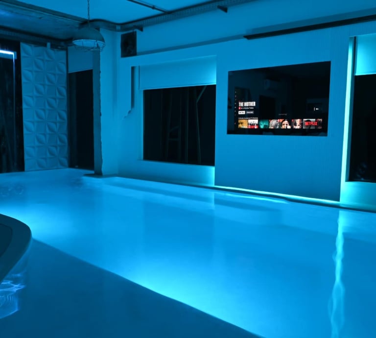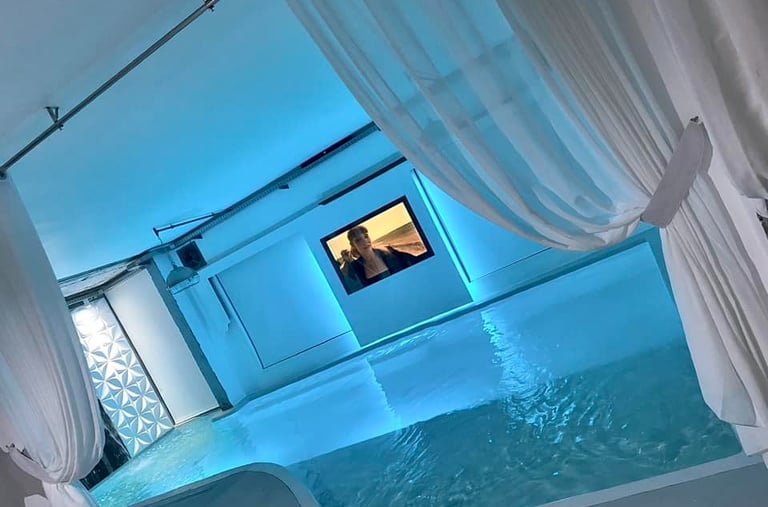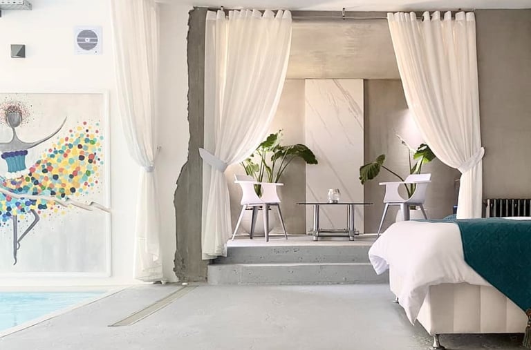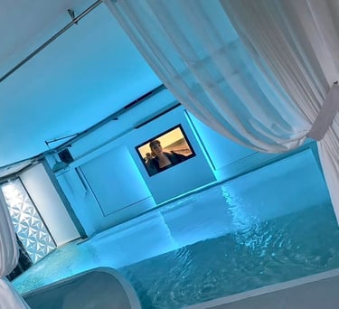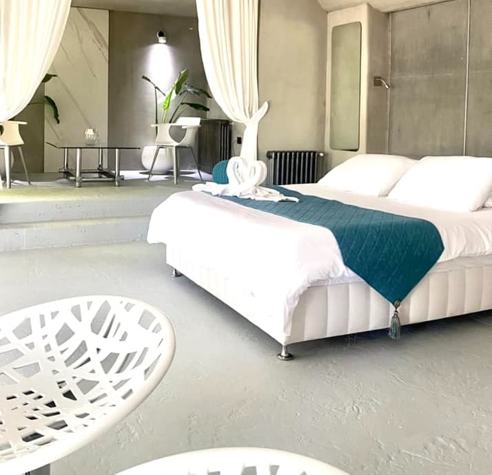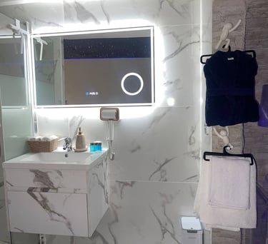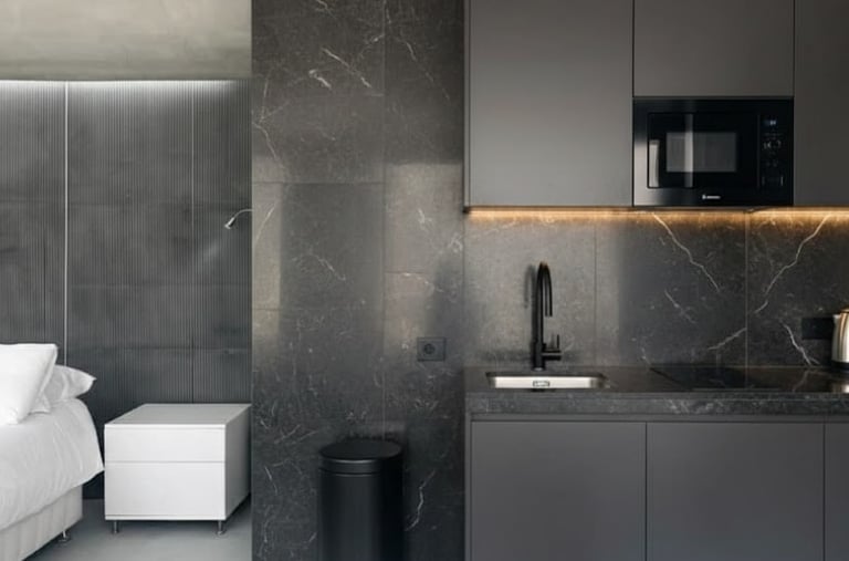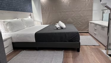 Lujoso suite tipo estudio con piscina climatizada infinita, servicios de streaming (Netflix, YouTube Premium, HBO, Prime, Disney+), cama queen size, baño, aire acondicionado, calefacción, 1 plaza de parking, cocina