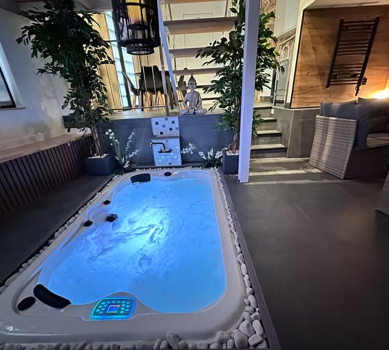 Lujoso piso con jacuzzi tipo hidromasaje privado,cocina equipada, servicios de streaming (Netflix, YouTube Premium, HBO, Prime, Disney+), cama queen size, sofacama, baño con ducha adaptable, aire acondicionado, calefacción, 1 plaza de parking